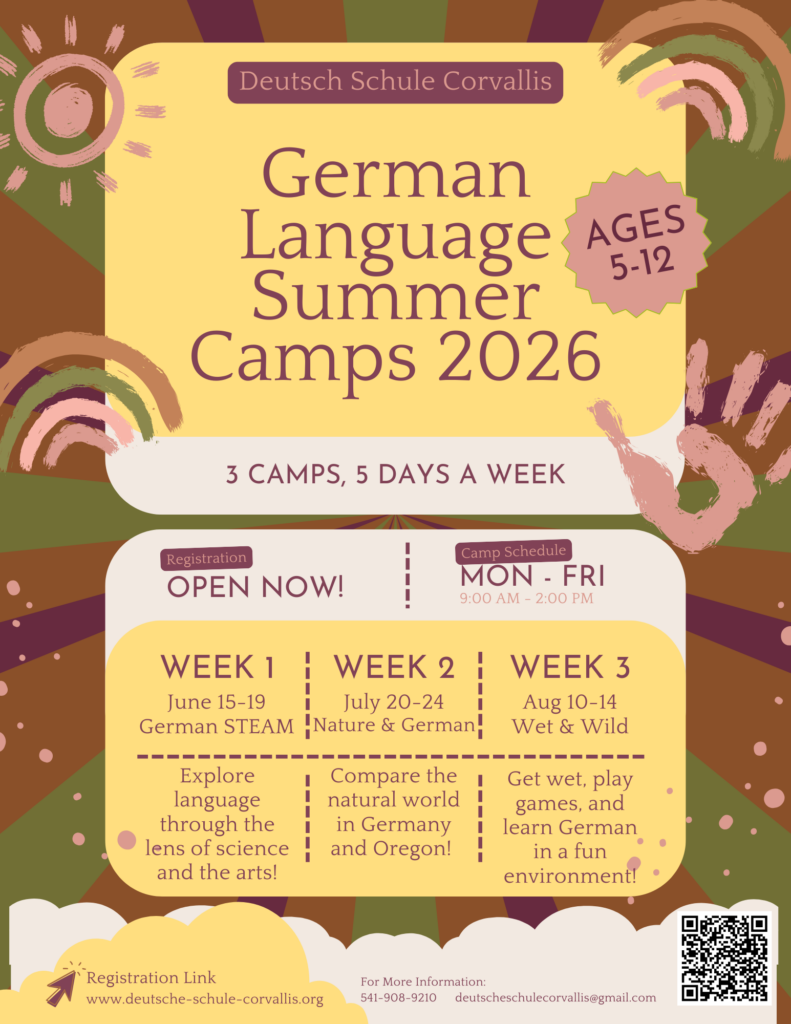 Does your budding linguist want a creative environment to explore the German language in? Do they enjoy crafts, music, sports and games? Then they will be a perfect fit for our Summer Sprouts program. We will focus on themes that younger children can relate to – family, pets, sports, and of course, themselves! All proficiency levels are welcome!